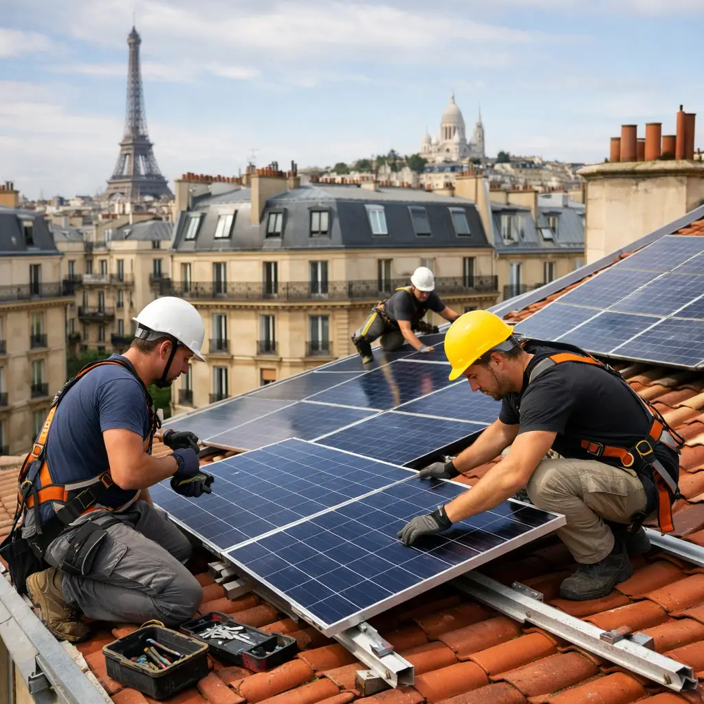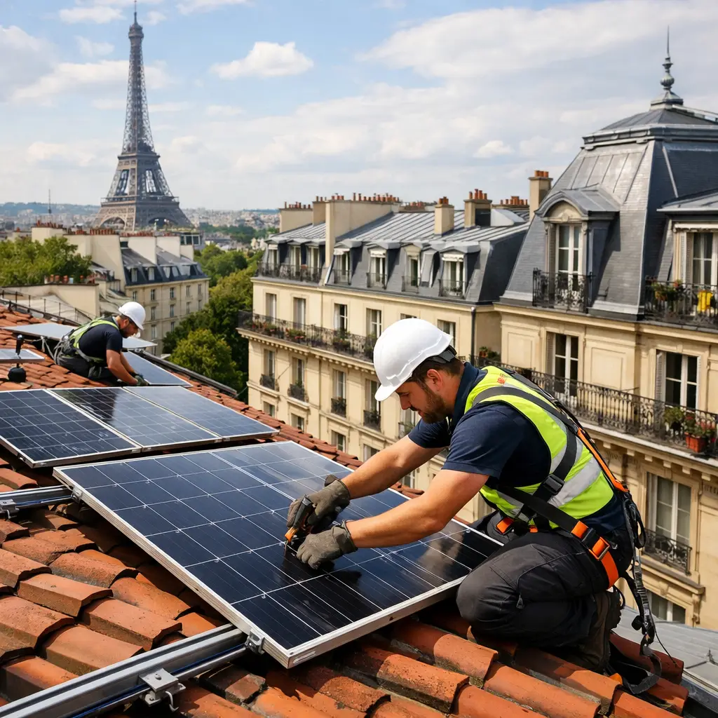 Paris intra-muros présente des contraintes architecturales strictes. La quasi-totalité des toits parisiens est soumise aux règles de l’Architecte des Bâtiments de France — les panneaux ne doivent généralement pas être visibles depuis la rue. Des solutions adaptées existent néanmoins, notamment pour les toits-terrasses et les toitures en zinc à faible pente.